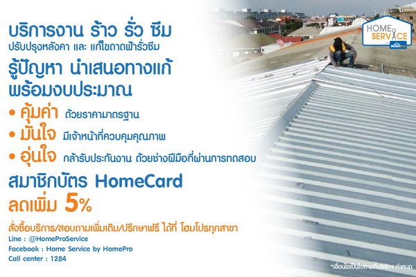 วางใจไร้กังวล จะร้าว รั่ว ซึม จุดไหนๆ HomeService แก้ได้ พร้อมรับมือสู้ฝนด้วยบริการ งาน ร้าว รั่ว ซึม ปรับปรุงหลังคา และแก้ไขดาดฟ้ารั่วซึม รู้ปัญหา นำเสนอทางแก้ พร้อมงบประมาณ คุ้มค่าด้วยราคามาตรฐาน มั่นใจมีเจ้าหน้าที่ควบคุมคุณภาพ อุ่นใจ กล้ารับประกันงาน ด้วยช่างฝีมือ บริการที่ปรึกษาให้คำแนะนำเรื่องการแก้ไขปัญหารั่วซึม วิเคราะห์สาเหตุ พร้อมทั้งเข้าดำเนินการโดยช่างผู้เชี่ยวชาญมืออาชีพเฉพาะด้านจากโฮมโปร ที่ผ่านการอบรมโดยตรง ติดตามสอบถามความคืบหน้างานได้ตลอด หมดปัญหาช่างทิ้งงาน