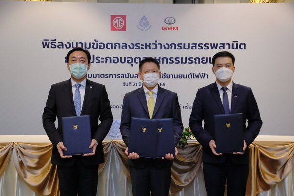 บริษัท เอสเอไอซี มอเตอร์ – ซีพี จำกัด และ บริษัท เอ็มจี เซลส์ (ประเทศไทย) จำกัด   ผู้ผลิตและจำหน่ายรถยนต์เอ็มจีในประเทศไทย ในฐานะผู้บุกเบิกและผู้นำตลาดรถยนต์พลังงานไฟฟ้าในประเทศไทย  ลงนามบันทึกข้อตกลงการขอรับสิทธิตามมาตรการสนับสนุนการใช้ยานยนต์ไฟฟ้ากับกรมสรรพสามิต  โดยมี นายลวรณ แสงสนิท อธิบดีกรมสรรพสามิต (กลาง) และ มร. จาง ไห่โป กรรมการผู้จัดการบริษัท เอสเอไอซี มอเตอร์ – ซีพี จำกัด และ บริษัท เอ็มจี เซลส์ (ประเทศไทย) จำกัด  (ซ้ายมือ) ร่วม พิธีลงนามข้อตกลงระหว่างกรมสรรพสามิตกับผู้ประกอบอุตสาหกรรมยานยนต์ตามมาตรการสนับสนุนการใช้ยานยนต์ไฟฟ้า ในงานบางกอก อินเตอร์เนชั่นแนล มอเตอร์โชว์ ครั้งที่ 43 อิมแพ็ค เมืองทองธานี
