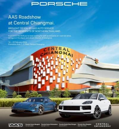 เอเอเอส ออโต้ เซอร์วิส ผู้แทนจำหน่ายรถยนต์ปอร์เช่อย่างเป็นทางการรายแรกในประเทศไทย เดินหน้าสร้างสรรค์ประสบการณ์เหนือระดับ ผ่านกิจกรรม AAS Roadshow at Central Chiangmai ระหว่างวันที่ 16–22 กุมภาพันธ์ 2569 ด้วยการยกทัพยนตรกรรมสปอร์ตปอร์เช่หลากหลายรุ่นสู่จังหวัดเชียงใหม่ ศูนย์กลางไลฟ์สไตล์และวัฒนธรรมแห่งภาคเหนือ เพื่อถ่ายทอดความเร้าใจในทุกมิติให้แก่ผู้หลงใหลในปอร์เช่ ผ่านกิจกรรมพิเศษ 3 รูปแบบ ได้แก่