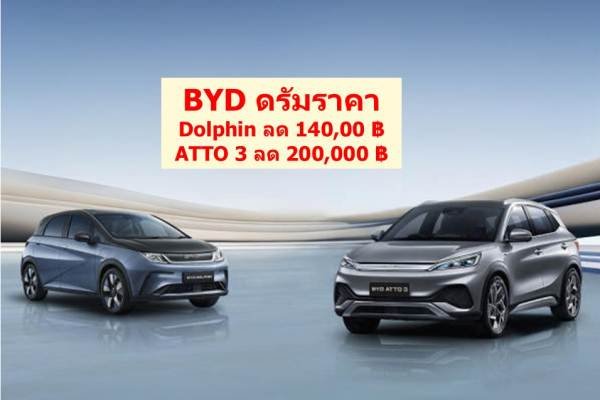 BYD ดรัมราคาขาย Dolphin ลด 140,00 ฿ ATTO 3 ลด 200,000 ฿