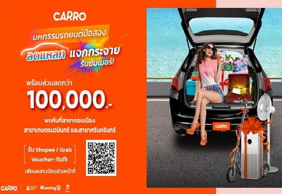 คาร์โร (Carro) ผู้นำด้านการซื้อ-ขายรถยนต์มือสองบนแพลตฟอร์มออนไลน์ “ยูนิคอร์น” รายแรกด้านตลาดยานยนต์แห่งเอเชียตะวันออกเฉียงใต้ จัดมหกรรมรถยนต์มือสองคุณภาพดีจากคาร์โรเป็นครั้งแรก ภายใต้ชื่อ “มหกรรมรถยนต์มือสอง ลดแหลก แจกกระจาย รับซัมเมอร์!” สนนราคาสุดเอ็กซ์คลูซีฟ คุ้มสุดๆ พร้อมโปรโมชั่นคุ้มสุดฮอตท้าชนลมร้อน โดยรวบรวมรถยนต์มือสองคุณภาพเยี่ยมกว่า 300 รายการ ลดสูงสุดกว่า 100,000 บาทต่อคัน ด้วยราคาเริ่มต้นเพียง 149,000 บาท! และแจกความคุ้มอีก 3 ต่อ!