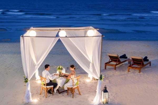 Each pair of lovebirds will be welcomed with two glasses of bubbly and presented with a special souvenir of this enchanting evening. Guests who choose to dine in the cozy beach cabana will be treated to the five-course set menu and a premium seafood on ice platter, all served by a personal butler and serenaded with music, creating memories that last a lifetime.