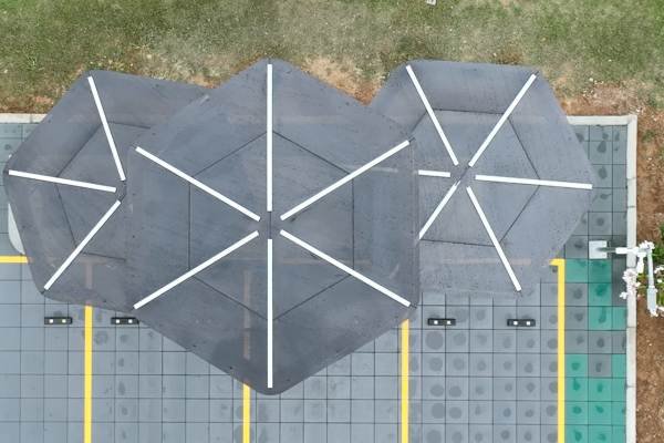 จุดเด่นของสถานีชาร์จนี้คือการใช้วัสดุที่คำนึงถึงสิ่งแวดล้อม โดยเฉพาะหลังคาที่ใช้วัสดุโพลีคาร์บอเนตรีไซเคิลของโคเวสโตร คือ Makrolon® RE ที่ผลิตจากศูนย์การผลิตโคเวสโตรมาบตาพุด จ.ระยอง ซึ่งโพลีคาร์บอเนต RE Series จากโคเวสโตรนี้ เป็นวัสดุที่ผลิตจากวัตถุดิบชีวภาพหมุนเวียน (bio-circular) ทดแทนวัตถุดิบจากฟอสซิล โดยมีปริมาณวัตถุดิบชีวภาพสูงถึง 72-89% ผ่านระบบการรับรอง ISCC PLUS ช่วยลดการปล่อยคาร์บอนได้สูงถึง 100% ในบางเกรด ทำให้เป็นโพลีคาร์บอเนตคาร์บอนนิวทรัลรายแรกของโลก วัสดุ RE Series มีคุณสมบัติเทียบเท่ากับโพลี-คาร์บอเนตจากฟอสซิล สามารถใช้ทดแทนได้ทันทีโดยไม่ต้องปรับเปลี่ยนกระบวนการผลิต เหมาะสำหรับอุตสาหกรรมอิเล็กทรอนิกส์ ยานยนต์ และการแพทย์ที่ต้องการลดผลกระทบต่อสิ่งแวดล้อมช่วยลดการใช้ทรัพยากรใหม่ และลดปริมาณขยะพลาสติก