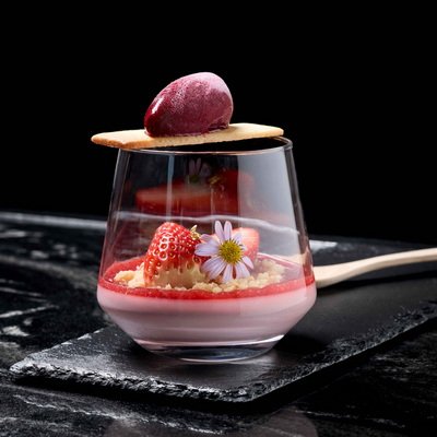 สตรอว์เบอร์รี่เกาหลีโดดเด่นด้วยรสหวานฉ่ำ กลิ่นหอมสดชื่น และเนื้อสัมผัสนุ่มละมุน กลายเป็นแรงบันดาลใจในการรังสรรค์ 4 เมนูของหวานสุดประณีตในสไตล์ซิกเนเจอร์ของ Akira Back ได้แก่ Strawberry Shortcake สตรอว์เบอร์รี่ชอร์ตเค้กเนื้อสปันจ์วานิลลาสูตรโฮมเมด พร้อมวิปครีมและคอมโพต Macaron Ice Cream เสิร์ฟคู่ซอลต์ครีมชีส ครีมชีสโยเกิร์ต และไอศกรีมสตรอว์เบอร์รี่ Strawberry Panna Cotta เสิร์ฟกับไอศกรีมเบอร์รี่มิกซ์และซอสสตรอว์เบอร์รี่ และโคนไอศกรีมสตรอว์เบอร์รี่พร้อมซอสเบอร์รี่