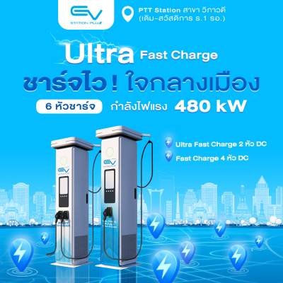 นวัตกรรม Ultra Fast Charge ช่วยให้การชาร์จรถยนต์ไฟฟ้าเร็วขึ้นกว่าที่เคย ด้วยเทคโนโลยี Liquid-Cooled ที่บริหารจัดการการจ่ายไฟอย่างมีประสิทธิภาพและระบายความร้อนในการชาร์จได้ดียิ่งขึ้น ตอบโจทย์รถยนต์ไฟฟ้าที่สามารถเรียกกำลังไฟได้สูงในพื้นที่มีความต้องการหนาแน่น พร้อมให้บริการที่ พีทีที สเตชั่น สาขาวิภาวดี (สวัสดิการ ร.1 รอ.) เป็นสาขาแรก มีทั้งหมด 4 แท่นชาร์จ รวม 6 หัวชาร์จ โดยแบ่งเป็น Ultra Fast Charge จำนวน 2 แท่นชาร์จ (2 หัวชาร์จ DC CCS2) ที่สามารถจ่ายกำลังไฟแรงสุด 480 kW ต่อหัวชาร์จ ให้กระแสไฟ 425-500 A รองรับการชาร์จต่อเนื่องได้นาน 30 นาที และ Fast Charge อีก 2 แท่นชาร์จ (4 หัวชาร์จ DC CCS2) ที่มีกำลังไฟสูงสุด 480 kW ต่อหัวชาร์จ ให้กระแสไฟ 375-500 A รองรับการชาร์จต่อเนื่อง 10 นาที เพิ่มทางเลือกให้ผู้ใช้งาน EV เดินทางต่อได้อย่างรวดเร็ว ภายในเวลาเพียง 15 นาที สามารถชาร์จแบตเตอรี่ได้ถึง 80% ตามความสามารถในการเรียกกำลังไฟของรถยนต์ไฟฟ้าแต่ละรุ่น