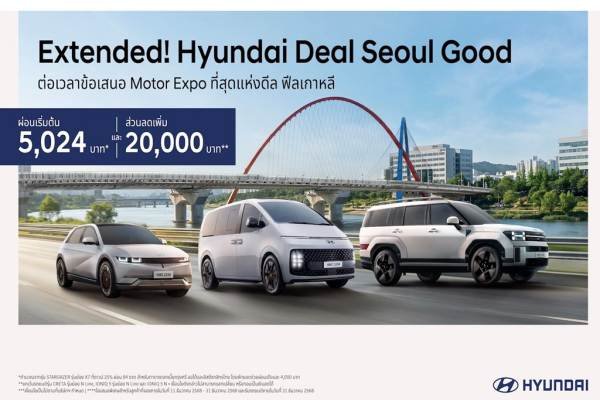 จากความสำเร็จในงาน Motor Expo 2025 ที่ผ่านมา บริษัท ฮุนได โมบิลิตี้ (ประเทศไทย) จำกัด เผยกระแสตอบรับจากผู้บริโภคชาวไทยเกินความคาดหมาย ส่งผลให้ยอดจองรถยนต์ฮุนไดเพิ่มขึ้นอย่างต่อเนื่อง เพื่อตอบแทนความเชื่อมั่นและความไว้วางใจจากลูกค้า ฮุนไดจึงประกาศขยายระยะเวลาแคมเปญพิเศษ “Hyundai Deal SEOUL Good” ต่อเนื่องไปจนถึงวันที่ 31 ธันวาคม 2568 มอบข้อเสนอสุดคุ้มที่ลูกค้าสามารถเลือกได้ตามไลฟ์สไตล์ ทั้งอัตราดอกเบี้ยพิเศษเริ่มต้น 0% แพ็กเกจผ่อนชำระเริ่มต้นเพียง 5,024 บาทต่อเดือน หรือรับส่วนลดพิเศษเพิ่มสูงสุด 20,000 บาท* สำหรับการจองและรับรถรุ่นที่ร่วมรายการภายในระยะเวลาแคมเปญ