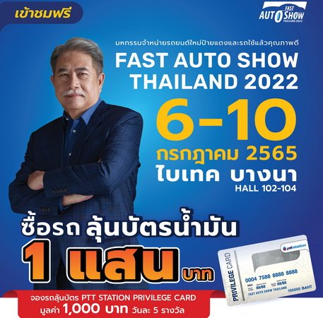 Fast Auto Show Thailand 2022 ฟาสต์ ออโต โชว์ ไทยแลนด์ 2022 ครั้งที่ 10 แวะมา เลือกคันที่ชอบ ถอยคันที่ใช่ บนพื้นที่การจัดงานรูปโฉมใหม่ที่ยิ่งใหญ่กว่าเดิม ระหว่าง 6-10 กรกฎาคม 2565 ณ ศูนย์นิทรรศการและการประชุมไบเทค บางนา ฮอลล์ EH102-104 เข้าชมฟรี ไม่มีค่าใช้จ่าย