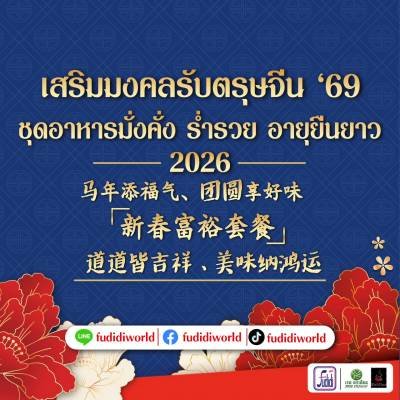 รีบด่วน! จำนวนจำกัดเพียง 100 ชุดเท่านั้น มาร่วมฉลองตรุษจีนด้วยอาหารระดับภัตตาคารในบ้านของคุณเอง สามารถสั่งจองความอร่อยพร้อมสิริมงคลสุดเฮงตั้งแต่วันนี้ – 14 กุมภาพันธ์ 2569 ได้ที่ Fudidiworld.com หรือผ่านทาง LINE Official Account: @fudidiworld ส่งฟรีในเขตกรุงเทพฯ และปริมณฑล