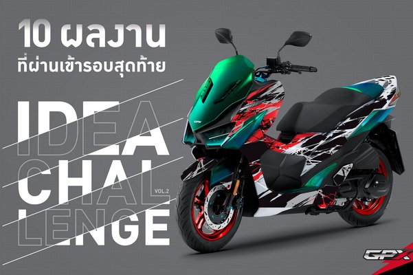 ประกาศผลไปแล้ว สำหรับ 10 ผลงานสุดท้ายที่ผ่านเข้ารอบการประกวดตกแต่งภาพรถรุ่น DRONE 4 Valves ในโครงการ “GPX IDEA CHALLENGE VOL.2 เฟ้นหาไอเดียออกแบบ โดน โดรน!!” ที่จัดต่อเนื่องเป็นครั้งที่ 2 เพื่อเปิดโอกาสให้กับผู้ที่มีไอเดียและชื่นชอบในงานออกแบบได้แสดงความสามารถในการตกแต่งภาพรถรุ่น DRONE 4 Valves ผ่านโปรแกรมการแต่งภาพ ภายใต้แนวคิด “Sport Urban” เพื่อชิงรางวัลรวมมูลค่ากว่า 100,000 บาท ได้เปิดเผย 10 ผลงานไปเป็นที่เรียบร้อยแล้วผ่านทางหน้าแฟนเพจ ‘GPX Thailand’ และต้องบอกเลยว่าแม้กิจกรรมนี้เป็นกิจกรรมที่จัดขึ้นเป็นครั้งที่ 2 แต่ก็ยังคงได้รับความสนใจจากแฟนๆอีกเช่นเคย จนมีผู้ส่งผลงานเข้าร่วมประกวดรวมกว่า 100 ผลงาน ที่สำคัญ แต่ละผลงานนั้นจัดเต็มไอเดียกันมาชนิดที่เรียกว่ากินกันไม่ลงเลยทีเดียว