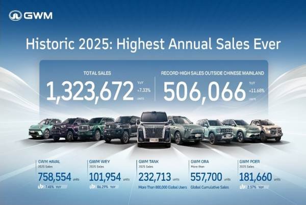 GWM (Thailand ยกระดับสู่การเป็นแบรนด์รถยนต์ที่มีผลิตภัณฑ์ครอบคลุมทุกประเภทพลังงาน ตอบโจทย์ผู้ใช้งานทุกกลุ่มทั่วโลก ภายใต้แนวคิด “All Scenarios – All Powertrains – All Users” พร้อมก้าวสู่การเป็นแบรนด์รถยนต์จีนที่คนไทยให้ความไว้วางใจสูงสุด และอันดับหนึ่งของแบรนด์รถยนต์จีนด้านบริการหลังการขายผ่านผลิตภัณฑ์ที่มีคุณภาพ เทคโนโลยีที่ล้ำสมัย และการดูแลลูกค้าด้วยความใส่ใจและโปร่งใส โดยในปี 2568 ที่ผ่านมา GWM ประสบความสำเร็จอย่างโดดเด่นด้วย ยอดจำหน่ายรวมทั่วโลก 1,323,672 คัน เติบโต 7.33% เมื่อเทียบกับปีที่ผ่านมา สร้างสถิติสูงสุดใหม่เป็นประวัติการณ์ ขณะที่ยอดจำหน่ายรถยนต์พลังงานใหม่ (NEV) อยู่ที่ 403,653 คัน เพิ่มขึ้น 25.44% ทำสถิติสูงสุดใหม่เช่นกัน และยอดจำหน่ายในตลาดต่างประเทศรวม 506,066 คัน เติบโต 11.68% เมื่อเทียบกับปีก่อน นับเป็นสถิติสูงสุดตลอดกาล สะท้อนถึงการเติบโตอย่างมั่นคงทั้งในเชิงปริมาณและคุณภาพบนเวทีโลก