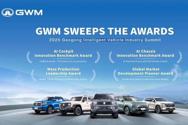 * รางวัล 2025 AI Chassis Innovation Benchmark: จากเทคโนโลยี AI Chassis ที่ยกระดับการควบคุมรถยนต์แบบองค์รวม ผสานระบบขับขี่อัจฉริยะ ห้องโดยสาร และการควบคุมยานพาหนะให้ทำงานร่วมกันได้อย่างไร้รอยต่อ ระบบสามารถประมวลผลแบบเรียลไทม์ ครอบคลุมทั้งการขับเคลื่อน 4 ล้อ เบรก การบังคับเลี้ยว และระบบกันสะเทือน มอบประสบการณ์ขับขี่ที่เหนือกว่าใน 4 ด้านหลัก ได้แก่ ความยืดหยุ่นสูง ความสบายเหนือระดับ การทำงานอัจฉริยะ และความปลอดภัยที่เพิ่มขึ้น ตอกย้ำบทบาทของ GWM ในการพลิกโฉมยานยนต์จากเพียง “พาหนะเพื่อการเดินทาง” สู่ “ยานยนต์อัจฉริยะในองค์รวม”