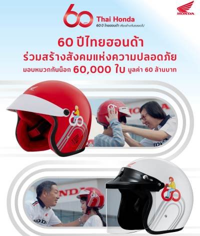 ไทยฮอนด้า เปิดตัวคลิปวิดีโอรณรงค์เนื่องในโอกาสครบรอบ 60 ปี ภายใต้แนวคิด “60 ปี ไทยฮอนด้า ขับขี่ปลอดภัย เพื่อสังคมไทยที่ยั่งยืน” เพื่อกระตุ้นให้เกิดพฤติกรรมขับขี่ปลอดภัย ผ่านเรื่องราวที่สื่อถึงความห่วงใยและความรักที่มีให้คนที่เรารัก โดยใช้หมวกกันน็อกเป็นตัวแทนความห่วงใย รวมถึงเน้นย้ำถึงคุณค่าของชีวิตในทุกเส้นทาง