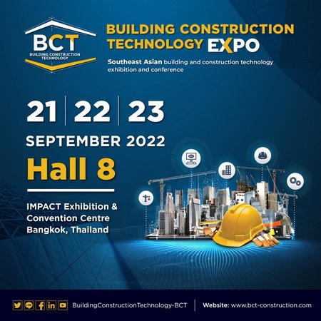 BCT Expo 2022 มีกำหนดจัดขึ้นระหว่าง 21-23 กันยายน 2565 บนพื้นที่ 5,000 ตารางเมตร ของอาคาร 8 ศูนย์แสดงสินค้าและการประชุม อิมแพ็ค เมืองทองธานี รองรับผู้ร่วมแสดงสินค้า-บริการ ผู้ร่วมประชุมสัมมนาและผู้สนใจเจรจาธุรกิจทั้งในประเทศไทยและจากต่างประเทศ สร้างความคึกคักให้แวดวงอุตสาหกรรมก่อสร้างอีกครั้ง