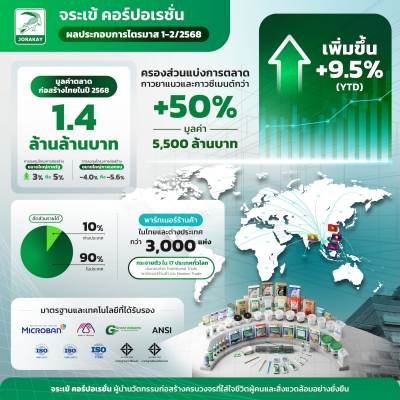 บริษัท จระเข้ คอร์ปอเรชั่น จำกัด เผยผลประกอบการครึ่งปีแรกของปี 2568 เติบโต 9.5% เทียบกับช่วงเวลาเดียวกันในปีก่อนหน้า และคาดว่าจะสามารถบรรลุเป้าหมายที่ตั้งไว้ได้ ท่ามกลางความท้าทายของเศรษฐกิจไทยและการแข่งขันที่ดุเดือดมากขึ้น บริษัทยืนหยัดด้วยแนวคิด “Build Today, Beyond Tomorrow” สร้างวันนี้ เพื่อพรุ่งนี้ที่ยั่งยืนกว่า ผ่านนวัตกรรมสินค้าก่อสร้างที่มีคุณภาพได้มาตรฐานในทุกกระบวนการผลิต ความสำเร็จในปีนี้เกิดจากแผนกลยุทธ์ที่ชัดเจนในการรับมือความท้าทายและการรองรับดีมานด์ใหม่ ๆ ทั้งการเพิ่มขึ้นของความต้องการวัสดุก่อสร้างสำหรับงานซ่อมแซมและเสริมความแข็งแรงหลังเหตุการณ์แผ่นดินไหว การเติบโตอย่างต่อเนื่องของโครงการก่อสร้างภาครัฐและอสังหาริมทรัพย์ รวมถึงการขยายตัวในตลาดต่างประเทศและผลิตภัณฑ์ใหม่ที่เริ่มสร้างยอดขายได้ดี