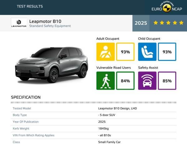 คะแนนด้านความปลอดภัยของ Leapmotor B10 ประกอบด้วย: