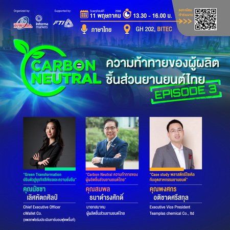 อินฟอร์มา มาร์เก็ตส์ และ สมาคมผู้ผลิตชิ้นส่วนยานยนต์ไทย เชิญชวนเข้าร่วมฟังงานสัมมนาฟรี ในหัวข้อ “CARBON NEUTRAL ความท้าทายของผู้ผลิตชิ้นส่วนยานยนต์ไทย EP.3” ร่วมการบรรยายและเสวนาโดยตัวแทนจาก cWallet Co.  และ Teamplas chemical Co., ltd โดยสัมมนานี้จะจัดขึ้นที่งานอินเตอร์แมค 2023 ในวันพฤหัสบดีที่ 11 พฤษภาคม พ.ศ.2566 เวลา 13.00 – 16.00 น ณ GH 202 ชั้น 2 ไบเทค บางนา พลาดไม่ได้… สำหรับปรับตัวสู่ธุรกิจสีเขียวและความยั่งยืน