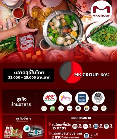 MK GROUP หรือ บริษัท เอ็มเค เรสโตรองต์ กรุ๊ป จำกัด (มหาชน) ผู้นำตลาดสุกี้ในประเทศไทยที่ครองส่วนแบ่งกว่า 60% จากมูลค่ารวมตลาดกว่า 23,000 – 25,000 ล้านบาท พร้อมตอกย้ำศักยภาพในการดำเนินธุรกิจ ด้วยการเดินหน้าชูกลยุทธ์ Value Strategy ในปี 68 มุ่งเน้นตอบโจทย์ผู้บริโภคและประสบการณ์ใหม่ให้กับผู้บริโภค รวมถึงการปรับโมเดลแบรนด์ในเครือ เสริมทัพด้วยแบรนด์ใหม่ ๆ เพื่อช่วยกระตุ้นความสนใจทั้งกลุ่มลูกค้าเดิมและกลุ่มลูกค้าใหม่ จนสามารถสร้าง engagement ได้อย่างต่อเนื่อง