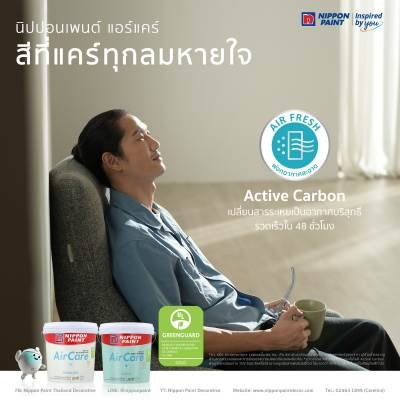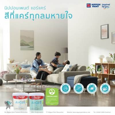 “นิปปอนเพนต์” แบรนด์สีนวัตกรรมยอดขายอันดับ 1 ของเอเชียจากประเทศญี่ปุ่น ย้ำภาพลักษณ์จุดยืนสำคัญของ “นิปปอนเพนต์แอร์แคร์” (Nippon Paint AirCare) ในฐานะสุดยอดสีนวัตกรรมทาภายในเพื่อสุขภาพ เกรดอัลตร้าพรีเมียม รายแรกในไทยกับตรารับรองระดับโลก GREENGUARD GOLD จากสถาบัน UL สหรัฐอเมริกา การันตีอากาศภายในห่างไกลสารระเหย (Zero VOCs) เสมือนเป็นตัวช่วยผู้ดูแลอากาศในบ้านให้สะอาดกว่า เสริมสุขภาพที่ดีขึ้นให้กับทุกชีวิตกับคำมั่น “สีที่แคร์ทุกลมหายใจ” โดยครั้งนี้ นิปปอนเพนต์ แอร์แคร์ มาพร้อมอีกหนึ่งความเหนือกว่ากับบทบาทการเป็น “Lifestyle Interior Paint” ซึ่งเข้าใจไลฟ์สไตล์ของผู้อยู่อาศัยทุกรูปแบบอย่างแท้จริง ด้วยความหลากหลายของสีสันที่ช่วยให้ผู้ใช้ได้สะท้อนตัวตนตามต้องการ โดยนิปปอนเพนต์เริ่มสื่อสารภาพลักษณ์ดังกล่าวผ่านอินเทอร์เน็ตฟิล์มเรื่องใหม่กับ “คนรักสุขภาพ” และ “ทุกคนที่มองหาสีสันที่ใช่ เพื่อแสดงอัตลักษณ์จากภายในสู่ที่อยู่อาศัย” เพื่อส่งให้ “นิปปอนเพนต์ แอร์แคร์” ขึ้นแท่นเป็นสีนวัตกรรมทาภายในที่หนึ่งในใจของทุกคน