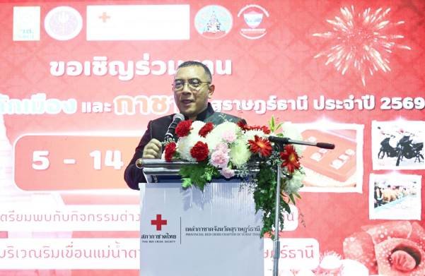 โภชศาลหลักเมืองและกาชาดสุราษฎร์ธานี” ประจำปี 2569โดยมี นายจุมพฏ วรรณฉัตรสิริ ผู้ว่าราชการจังหวัดสุราษฎร์ธานี เป็นประธาน ดร.วิภารัตน์ ดีอ่อง ผู้อำนวยการสำนักงานการวิจัยแห่งชาติ กล่าวสนับสนุนนวัตกรรม นายประเสริฐ บุญประสพ นายกเทศมนตรีนครสุราษฎร์ธานี อาจารย์พิศิษฐ์ มิตรเกื้อกูล นายกสมาคมกีฬาเครื่องบินจำลองและวิทยุบังคับคณะผู้บริหารในพื้นที่ให้การต้อนรับ ประชาชนในพื้นที่ เข้าร่วมงานอย่างคับคั่ง ณ บริเวณริมเขื่อนแม่น้ำตาปี อำเภอเมืองสุราษฎร์ธานี จังหวัดสุราษฎร์ธานี