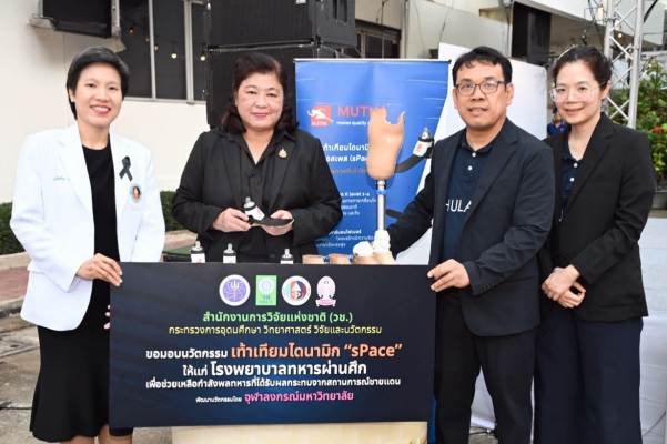 สำนักงานการวิจัยแห่งชาติ (วช.) กระทรวงการอุดมศึกษา วิทยาศาสตร์ วิจัยและนวัตกรรม ส่งมอบนวัตกรรมเท้าเทียมไดนามิกส์เอสเพส (sPace) เพื่อช่วยเหลือกำลังพลทหารที่ได้รับผลกระทบจากเหตุการณ์ชายแดน และมอบเงินบริจาคเนื่องจากเหตุการณ์อุทกภัยภาคใต้ โดย ดร.วิภารัตน์ ดีอ่อง ผู้อำนวยการสำนักงานการวิจัยแห่งชาติ เป็นประธานในพิธี พร้อมด้วย แพทย์หญิงจิตติมา ปรีชา ผู้อำนวยการโรงพยาบาลทหารผ่านศึก และผู้บริหาร วช. เข้าร่วมในพิธี ณ สำนักงานการวิจัยแห่งชาติ