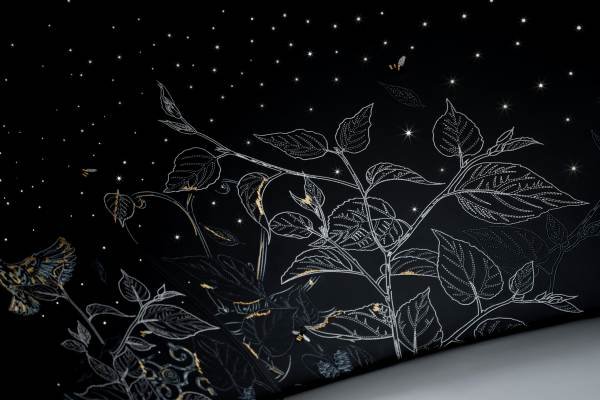 The scene unfolds to include the distinctive square-crowned trees in the courtyard of the marque’s Goodwood headquarters. The honeybees – a reference to the 250,000 residents of the Rolls-Royce Apiary – are in full flight, perhaps towards the Phantom Rose, grown exclusively on the grounds of the Home of Rolls-Royce. Interwoven within the constellations are quiet tributes to great Phantoms of the past – among them a bird motif representing Sir Malcolm Campbell’s Phantom II, known as the ‘Bluebird’. Hidden amongst the mulberry leaves is a reference to the locking mechanism on the vault door at ‘The Bank’ – the secret 1990s design studio where the first Phantom of the Goodwood era was drafted.