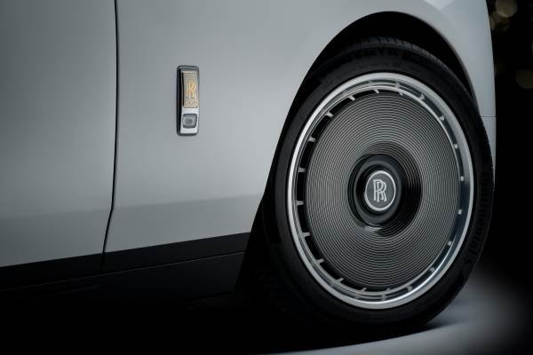 Resolving the exterior is a set of Phantom disc wheels, each engraved with 25 lines – honouring the 25 motor cars within the collection and, together, making 100 lines to celebrate the centenary year.