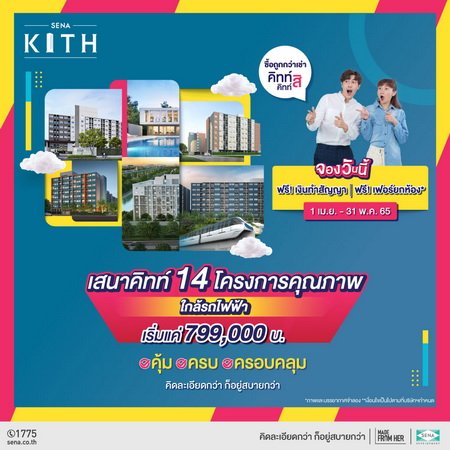 SENA เดินหน้ากวาดมาร์เก็ตแชร์ยืนหนึ่งคอนโดต่ำล้าน หนุนลูกค้า “ซื้อถูกกว่าเช่า” ดึงแคมเปญ “SENA KITH” คัมแบ็กซีซั่นสอง ปลุกเร้าดีมานด์กลุ่มลูกค้ารายได้จำกัด-วัยทำงาน มองหาคอนโดอยู่บนโลเคชันดี ใกล้แหล่งงาน ใกล้รถไฟฟ้า พร้อมโปรโมชันพิเศษ ฟรี! เงินทำสัญญา ฟรี!เฟอร์ยกห้อง* ราคาคุ้มค่าเริ่มต้นเพียง 799,000 บาท ครบทุกฟังก์ชันการใช้ชีวิต ครอบคลุมทั้งการอยู่อาศัยและต่อยอดการลงทุนในอนาคต เริ่มตั้งแต่วันนี้ถึง 31 พ.ค.65