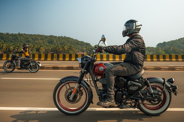With every curve and contour, the Goan Classic is inspired by the stripped-down and ‘tripped-up’ creations of Goa’s custom builders, blending the spirit of a bobber and Goan free-spirited lifestyle. The chopped fenders, mid-ape handlebars, ergonomically placed low-slung seats and the rear silhouette echo the days when riders stripped their machines down to the bare essentials, turning them into reflections of their personality. Each rev of the engine hums with the spirit of Goa’s golden groove, just as the sun-drenched days invite you to enjoy every moment. With true bobber-inspired DNA, the motorcycle is characterised by the single-seat design, floating rider seat, and whitewall tyres on tubeless spoke wheels that evoke the iconic customisations of bobber culture.
