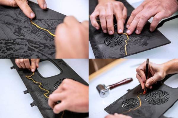 This unique woodwork introduces another Rolls-Royce first: gilding, also known as gold leafing, transforming Phantom’s most significant journeys into luminous threads of history. Drawing on centuries-old cabinet-making traditions, this process was adapted and perfected by Rolls-Royce to meet the marque’s extreme temperature and humidity testing parameters. Five artisans from the Interior Surface Centre undertook a specialist course at West Dean College, a celebrated centre of craftsmanship in West Sussex, to master the technique.