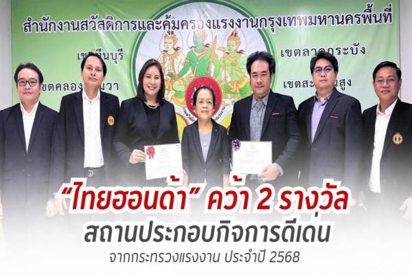 บริษัท ไทยฮอนด้า จำกัด คว้าสองรางวัลเกียรติยศระดับประเทศ โดยได้รับ “รางวัลเกียรติบัตรสถานประกอบกิจการดีเด่นด้านความปลอดภัยและอาชีวอนามัย ระดับประเทศ (Thailand Safety Award) ประจำปี 2568” อันเป็นผลจากการดำเนินงานอย่างต่อเนื่องด้านมาตรฐานความปลอดภัยในสถานประกอบการ อีกทั้งยังได้รับ “รางวัลสถานประกอบกิจการดีเด่นด้านแรงงานสัมพันธ์และสวัสดิการแรงงาน ประจำปี 2568” ตอกย้ำมาตรฐานความปลอดภัยและแรงงานสัมพันธ์ที่ยั่งยืน