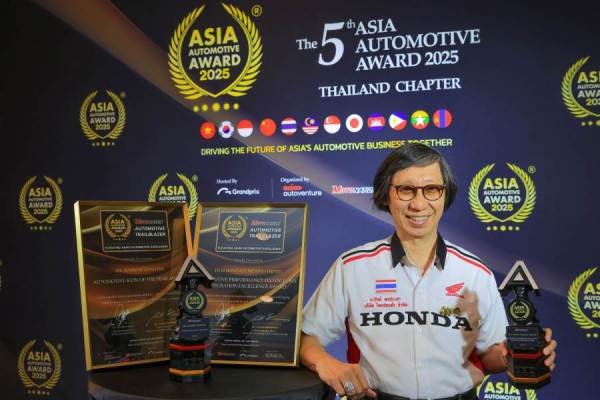 บริษัท ไทยฮอนด้า จำกัด ตอกย้ำบทบาทผู้นำวงการรถจักรยานยนต์ไทย ด้วยการคว้า 2 รางวัลจากเวทีประกาศรางวัลยานยนต์ระดับภูมิภาค “The 5th Asia Automotive Award 2025 – Thailand Chapter (AAA)” สะท้อนความสำเร็จทั้งด้านผลิตภัณฑ์ และเทคโนโลยีขององค์กรในระดับภูมิภาค ในส่วนของรางวัล Automotive Icon of the Year Award มอบให้แก่ “ก้อง” สมเกียรติ จันทรา นักแข่งรถจักรยานยนต์ชาวไทยผู้สร้างประวัติศาสตร์ในศึก MotoGP ในฐานะนักแข่งไทยคนแรกบนเวทีระดับโลก นับเป็นสัญลักษณ์แห่งความเป็นเลิศของวงการมอเตอร์สปอร์ตเอเชีย และเป็นบุคคลที่ได้รับการยอมรับอย่างสมศักดิ์ศรีสำหรับรางวัลในปีนี้ ตลอดจนบทบาทสำคัญในการยกระดับชื่อเสียงของประเทศไทย สร้างแรงบันดาลใจให้กับนักแข่งรุ่นใหม่ และช่วยผลักดันวัฒนธรรมมอเตอร์สปอร์ตของเอเชียให้เติบโตอย่างแข็งแกร่ง