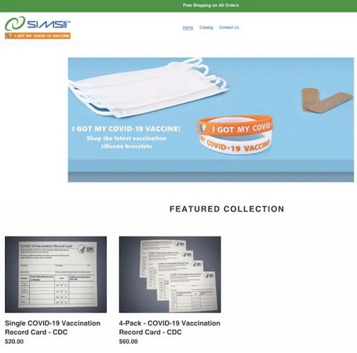 ตลาดของผิดกฎหมาย และบัตรแสดงการฉีดวัคซีนปลอม นับตั้งแต่ไตรมาสที่ 4 ของปีที่ผ่านมา มีการจับกุมและทำลายเว็บไซต์ที่ขายวัคซีนและยาปลอมอย่างต่อเนื่อง นอกจากนี้ เทรนด์ไมโคร ได้สังเกตว่ามีเพจผู้เสนอขายวัคซีนปลอมมากขึ้น ทั้งบน Facebook และแพลตฟอร์มส่งข้อความ เช่น Telegram รวมถึงเว็บไซต์อีคอมเมิร์ซที่ถูกกล่าวอ้างว่าขายวัคซีนปลอมทั่วโลก ซึ่งนอกจากผู้ประสงค์ร้ายเหล่านี้ จะได้ข้อมูลธนาคารและบัตรเครดิตพร้อมรายละเอียดส่วนบุคคลไป และยังมีความเป็นไปได้ว่าจะขายบางอย่างที่อาจสร้างความเดือดร้อนได้