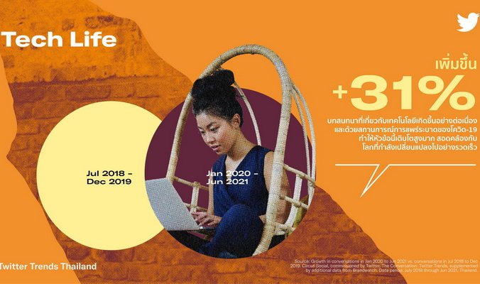 เป็นหัวข้อที่มีการพูดคุยสม่ำเสมอบนทวิตเตอร์ประเทศไทย โดยการแพร่ระบาดของโควิด-19 ผลักดันให้คนไทยก้าวไปข้างหน้าตามเทคโนโลยีที่เปลี่ยนแปลงไปอย่างรวดเร็ว ซึ่งสะท้อนได้จากบทสนทนาที่เกี่ยวกับชีวิตด้านเทคโนโลยีบนทวิตเตอร์ประเทศไทยที่เพิ่มขึ้น 31% ซึ่งสามารถแบ่งเป็นเทรนด์ได้ 3 เรื่อง คือ ชีวิตแบบดิจิทัลของฉัน ใช้ชีวิตอย่างชาญฉลาดด้วยเทคโนโลยี และการใช้เทคโนโลยีเพื่อสร้างสิ่งดีๆ