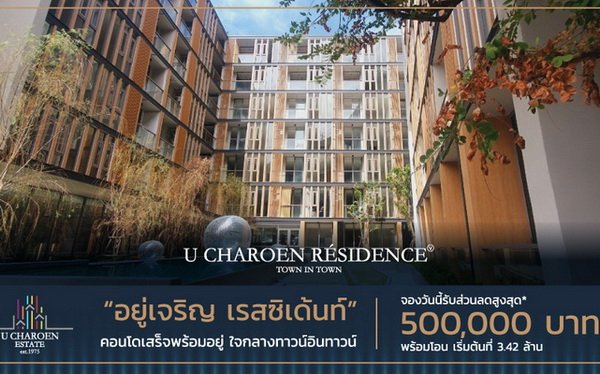 “อยู่เจริญ เรสซิเด้นท์ ทาวน์ อิน ทาวน์” คอนโดมิเนียมสวยพร้อมอยู่มอบส่วนลดสูงสุด 500,000 บาท
