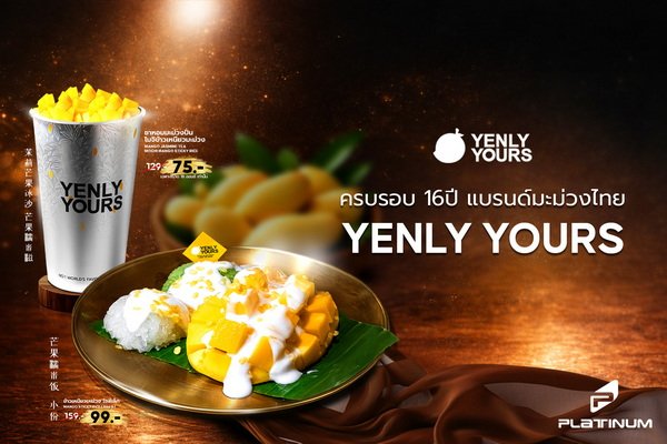 เปิดเมนูจัดโปรโมชั่นฉลองครบรอบ 16 ปี ลดราคาพิเศษแบบ ที่ไม่ได้มีบ่อย ได้แก่ ข้าวเหนียวมะม่วง (ชุดเล็ก) ปกติ 159 บาท เหลือเพียง 99 บาท ชามะลิหอมมะม่วงปั่น Mochi Mango Sticky Rice 16 ออนซ์ ปกติ 129 บาท เหลือเพียง 75 บาท ทุกวัน จันทร์ – ศุกร์ เวลา 10:00 – 16:00 น. เฉพาะหน้าร้านเท่านั้น ตั้งแต่วันนี้ถึงวันที่ 30 เมษายน 2569 ที่ร้าน Yenly Yours ชั้น 1 ศูนย์การค้าแพลทินัม ติดตามข่าวสารร้านค้าและโปรโมชั่นเพิ่มเติมได้ที่ Facebook: Platinum Fashion Mall แพลทินัม แฟชั่น มอลล์
